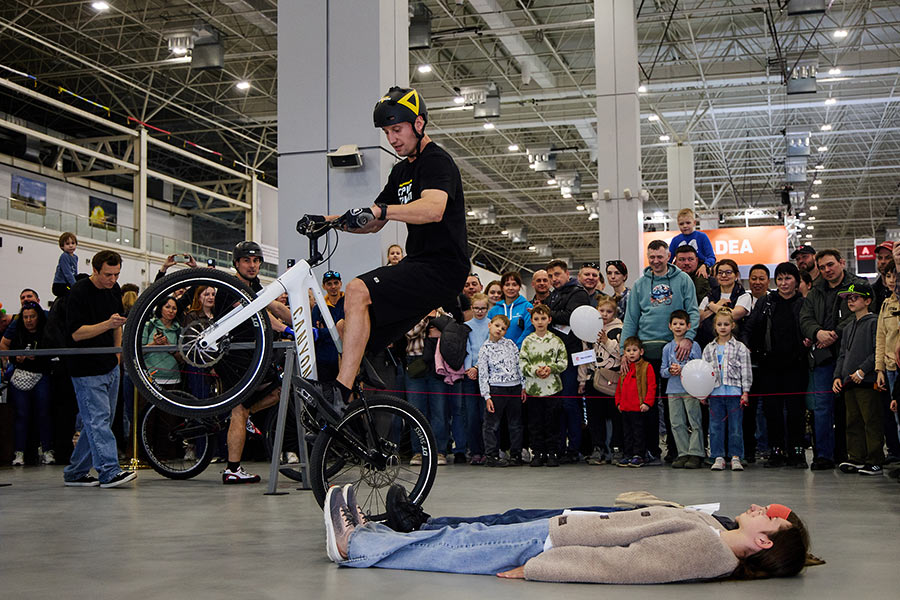 Уже который раз организаторы выставки подготовили для посетителей невероятное шоу, на котором Виктор Дарийчук и Максим Саматов удивляли своими трюками толпы людей. Такой велотриал площадки, как в этом году, зрители еще не видели: спортсмены смогли выполнить все свои фирменные трюки без ограничений.