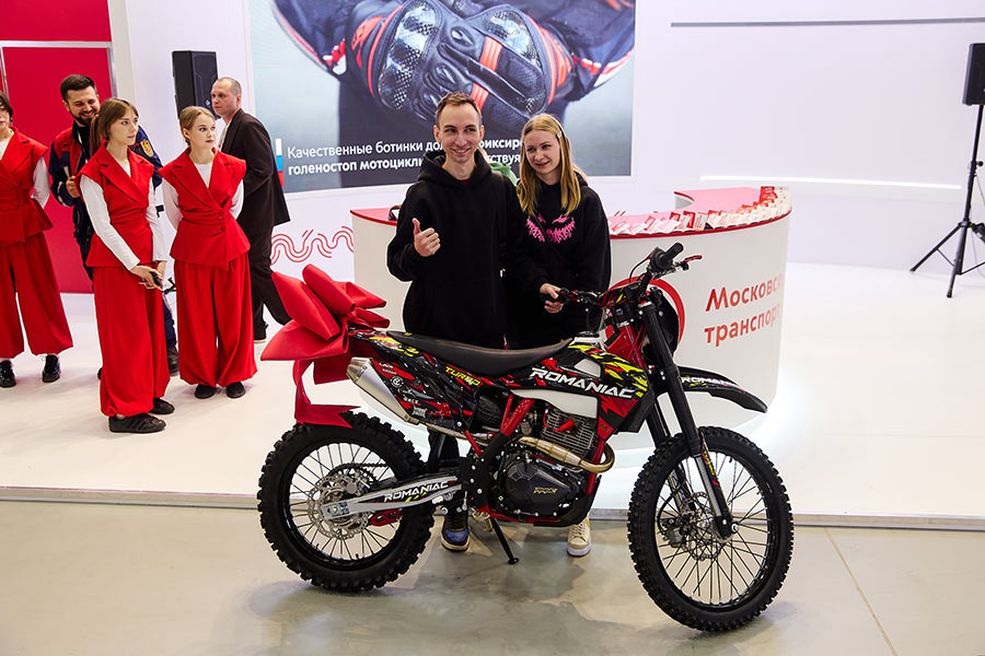В рамках программы «Москва — город для мотоциклистов» на выставке «Мотовесна 2026» прошел розыгрыш от Департамента транспорта и развития дорожно-транспортной инфраструктуры г. Москвы «Город для мотоциклистов». Главным призом стал мотоцикл ROMANIAC Turbo.
