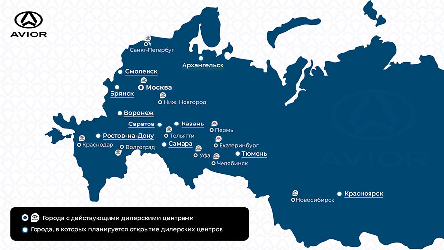 Годовой план компании к концу 2026 года: увеличить количество полноформатных дилерских центров до 25. Наибольшая потребность на автомобили Avior исходит из Казани, Архангельска, Смоленска, Брянска, Воронежа, Ростова-на-Дону, Казани, Саратова, Самары, Тюмени и Красноярска. Параллельно с этим Avior ведет поиск новых партнеров для получения статуса официального дилера. Компания проводит подбор кандидатов на заключение дилерских контрактов по продажам и техническому обслуживанию коммерческой техники в интересных ей регионах, городах миллионниках.
