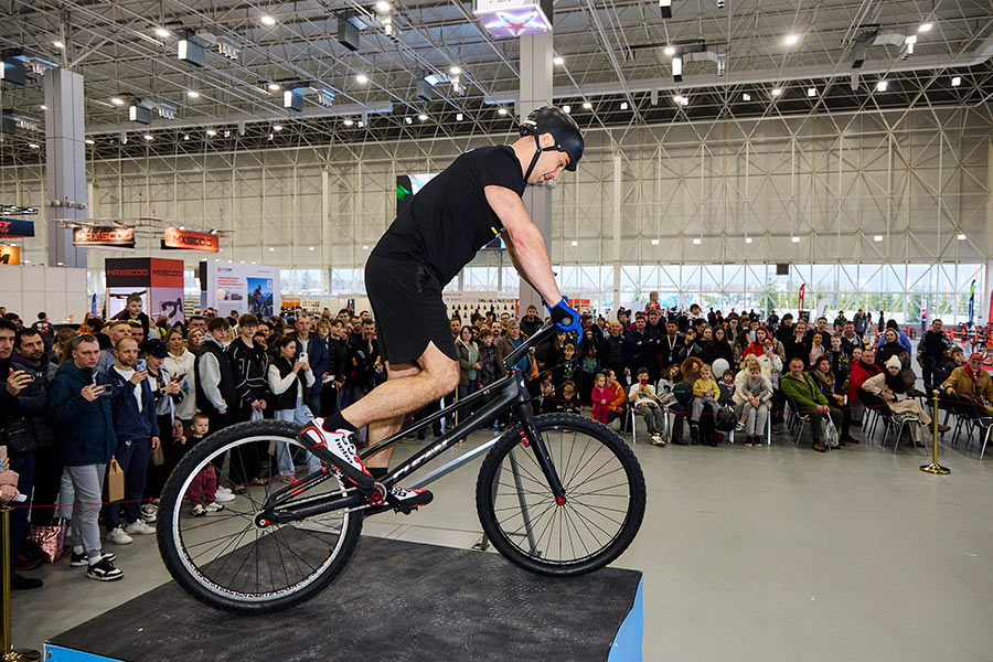 Уже который раз организаторы выставки подготовили для посетителей невероятное шоу, на котором Виктор Дарийчук и Максим Саматов удивляли своими трюками толпы людей. Такой велотриал площадки, как в этом году, зрители еще не видели: спортсмены смогли выполнить все свои фирменные трюки без ограничений.