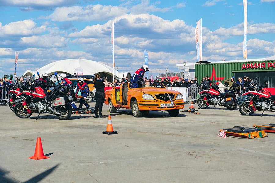 На уличной площадке Департамента транспорта и развития дорожно-транспортной инфраструктуры г. Москвы «Город для мотоциклистов» можно было ознакомиться с работой мотошколы Мосгортранс и посмотреть показательные выступления спасателей и ГОЧС.