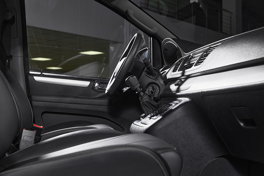 Внутри только два места. Водитель и пассажир. Третьего кресла нет, и это напрямую влияет на сценарии использования. В сегменте легких коммерческих автомобилей трехместная компоновка давно стала стандартом — возможность взять третьего пассажира часто решает какой фургон приобрести.